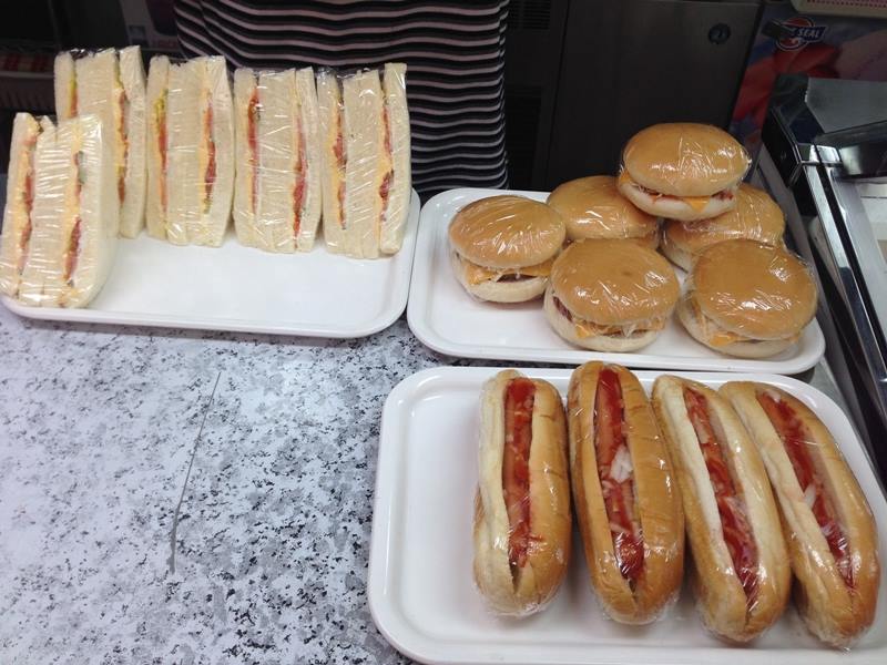 發現有一家店有開,走過去一看,桌上有賣早餐耶~不過只有3種選擇
