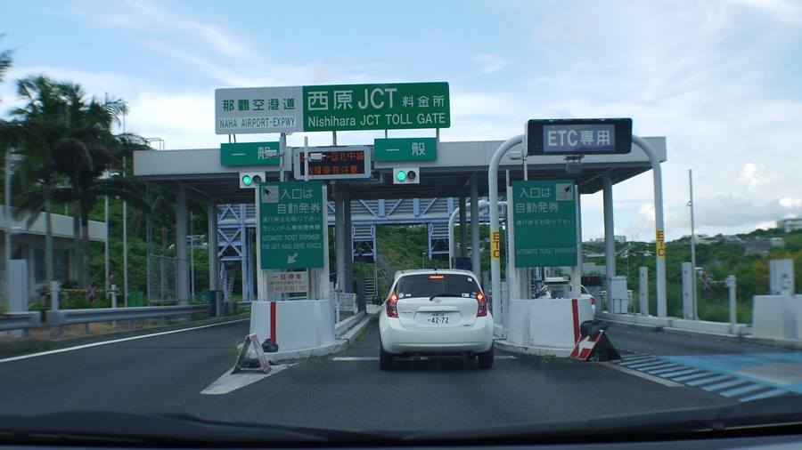 沖繩高速公路,上去前要抽卡,下去時再付錢。