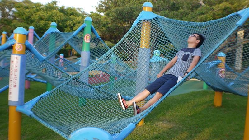 這位老兄年紀不小但也跟小孩一樣愛玩,這個床限制3歲以下~