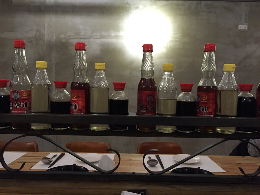 店內的位子只有兩排,中間用瓶瓶罐罐隔開