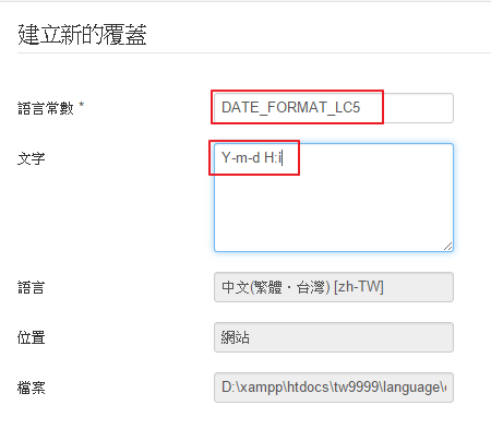 後台 > 擴充套件 > 語言 > 覆蓋 > 點新增