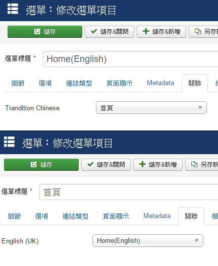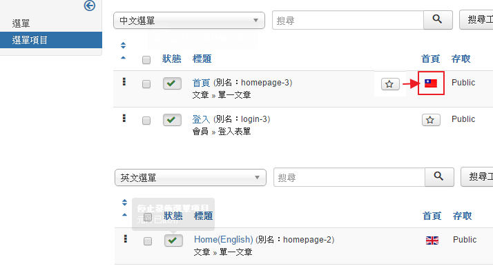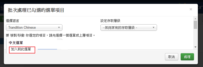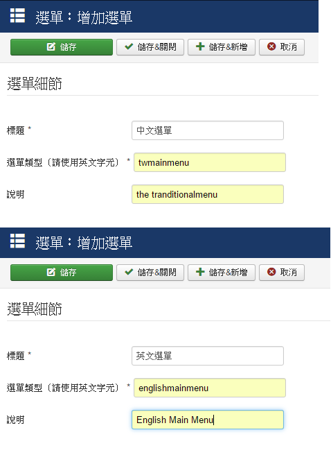 8. 將Joomla預設的選單項目,複製到 中文選單 / 英文選單
