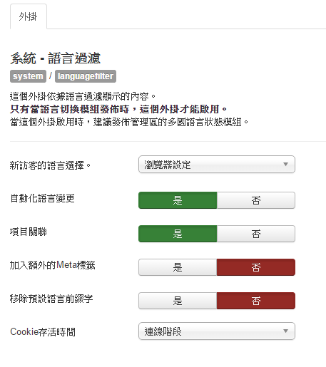 12. 到擴充套件 → 外掛 → 語言過濾,設定如下