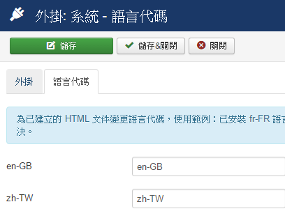 13. 到擴充套件 → 外掛 → 語言代碼,設定如下