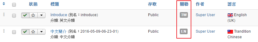 6. 文章建立關聯後,在列表中可以看到關聯項目