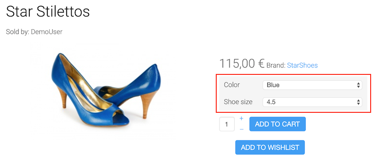 以上設定完成後,在前台就可以呈現規格選擇的項目了