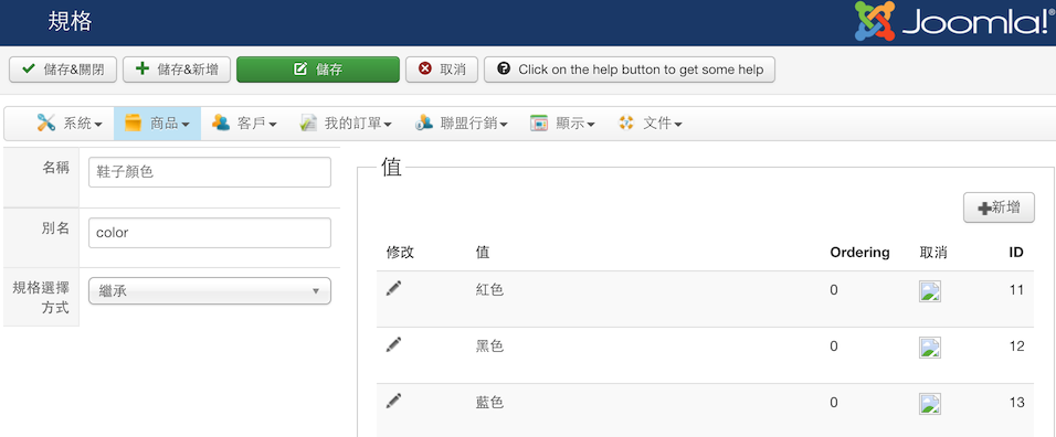 2. Hikashop > 商品 > 規格