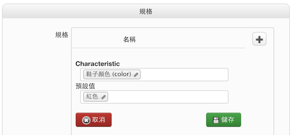 在右下角的規格區塊,選擇剛剛建立的規格選項