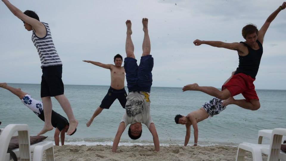 團體照少了MPE,因為他手機在滿月趴遺失,正在飯店上網換密碼~