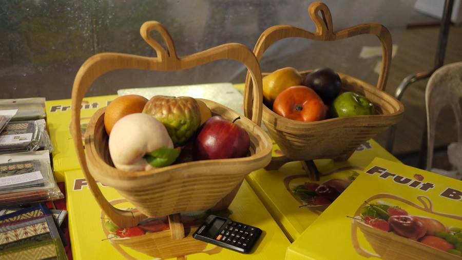 攤平可以當桌墊,拉起來可以當水果籃~