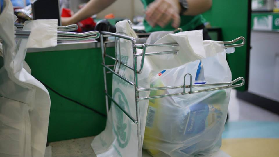 結帳的時候發現,塑膠袋有桿子撐開耶!!
