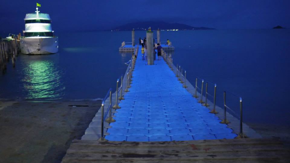 碼頭夜晚很漂亮,藍藍的光~