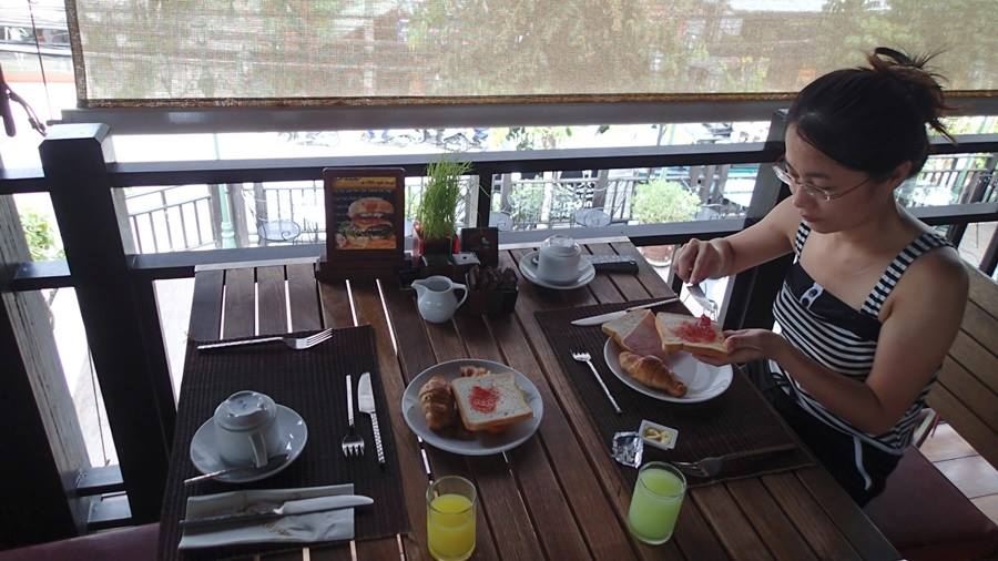 最後一天我們相約早上10點沙灘見,穿著泳衣吃早餐~
